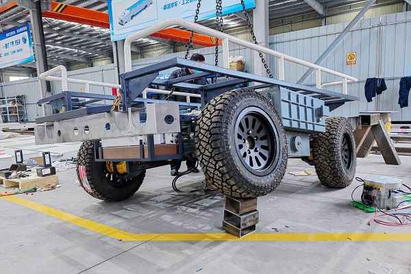 該車型整車和單邊均可跨越300毫米以上高度障礙,預期實現遠程遙控、自主行駛、智能跟隨、一鍵返航等功能,能夠滿足礦井復雜工況下的物料運輸需求,可應用于煤礦輔運、巡檢和搶險救援等工作,彌補單工種機器人功能單一的缺陷,同時有效解決井下最后一公里散料運輸難題,對智能煤礦“減員、增安、提效”具有重要意義。