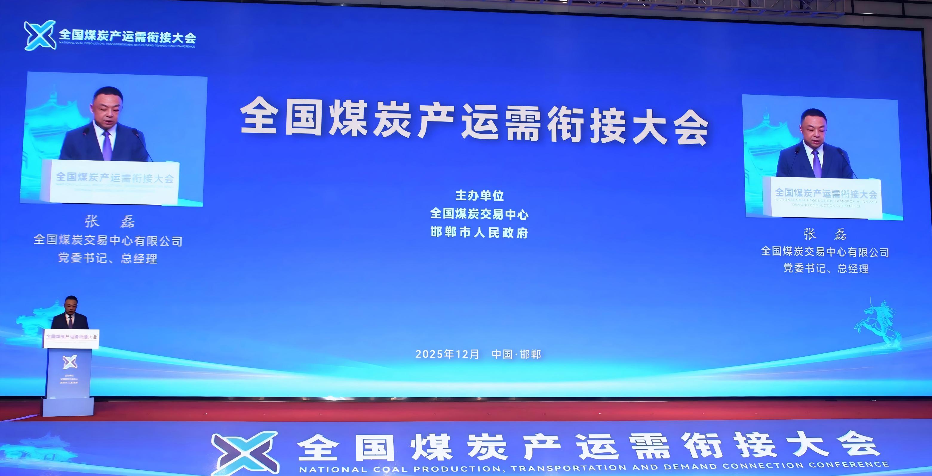 12月23日,2026年全國煤炭產運需銜接大會在河北邯鄲隆重召開。本次大會由全國煤炭交易中心、邯鄲市人民政府聯合主辦,以“促進全國煤炭產運需企業高效銜接,搭建多方需求平臺,為煤炭供應鏈‘十五五’良好開局夯實基礎”為主題,匯聚國家相關部委、國鐵集團、地方政府及煤炭、電力、港口、物流等領域千余名代表,共商能源保供與行業高質量發展大計。