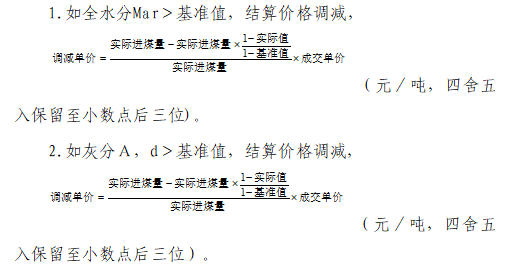 每日全部來煤為一個批次,該批次的所有子樣化驗結果加權平均值作為該批次煤的質量指標,自然月或執行期所有批次質量指標的加權平均值作為結算依據。各煤種質量考核包括熱值、硫分、水分、灰分考核。具體條款內容如下: