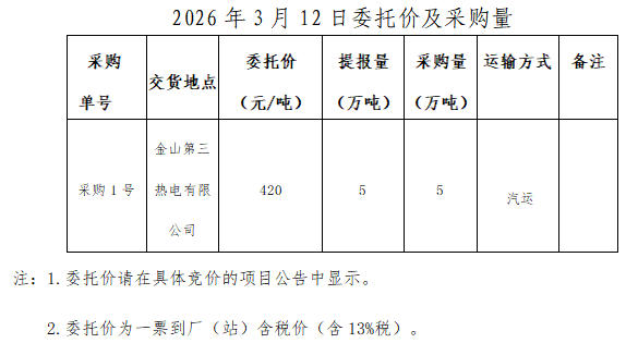內(nèi)蒙古能源集團(tuán)有限公司計(jì)劃對(duì)所屬內(nèi)蒙古能源集團(tuán)金山第三熱電有限公司2026年3月12日電煤采購(gòu)進(jìn)行電子專場(chǎng)交易,交易信息現(xiàn)對(duì)外公開發(fā)布,凡符合條件的交易商均可參加。