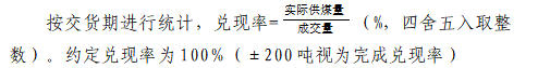 (一)銷方因自身原因?qū)е聝冬F(xiàn)率低于100%,除按質(zhì)量考核條款考核外,還將進(jìn)行兌現(xiàn)率考核,考核金額=成交量×(100%-兌現(xiàn)率)×成交價(jià)×5%,從保證金中扣除。
