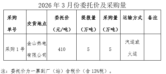 內(nèi)蒙古能源集團(tuán)有限公司計(jì)劃對(duì)所屬內(nèi)蒙古能源發(fā)電金山熱電有限公司2026年3月電煤采購(gòu)進(jìn)行電子專場(chǎng)交易,交易信息現(xiàn)對(duì)外公開發(fā)布,凡符合條件的交易商均可參加。