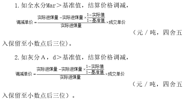 2.如(基準(zhǔn)值)<St,d≤(基準(zhǔn)值+0.2),以基準(zhǔn)值為基礎(chǔ),每增加0.01個(gè)百分點(diǎn),結(jié)算價(jià)格調(diào)減0.2元/噸。